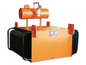 RCDC系列風(fēng)冷自卸式電磁除鐵器,是在RCDA系列風(fēng)冷懸掛式電磁除鐵器的基礎(chǔ)上增加了驅(qū)動(dòng)電機(jī)、滾筒、帶刮板的卸鐵膠帶等組成的卸鐵機(jī)構(gòu)。在工作過程中卸鐵機(jī)構(gòu)自動(dòng)將卸鐵皮帶上吸附的鐵磁性物質(zhì)拋到除鐵器以外的集鐵箱內(nèi),無需停電人工清理,實(shí)現(xiàn)了除鐵自動(dòng)化。